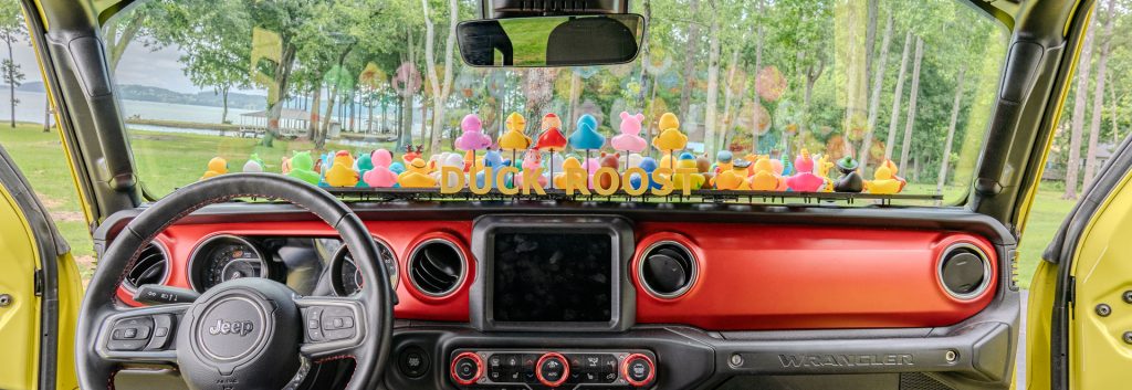 That’s when we discovered the Jeep tradition of “Ducking”—the simple but joyful act of leaving little rubber ducks on other Jeeps. The first time Rebecca was “ducked,” her reaction said it all: pure excitement and a smile that stretched from ear to ear. From that moment, her duck collection began to grow… and grow.